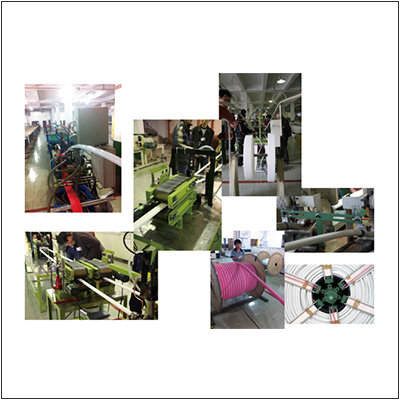 將已經(jīng)分條完成的壓花發(fā)泡材料,經(jīng)由縫合技術,可將FRB管/PVC管/PE內(nèi)管進行縫合加工,制成保溫管完成品。
