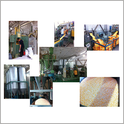 以粘料技術(shù)將粉體原料添加到樹脂粒子之間。通過混合,粉體被均勻分散在原料之間,并打成顆粒依比例調(diào)整配方。